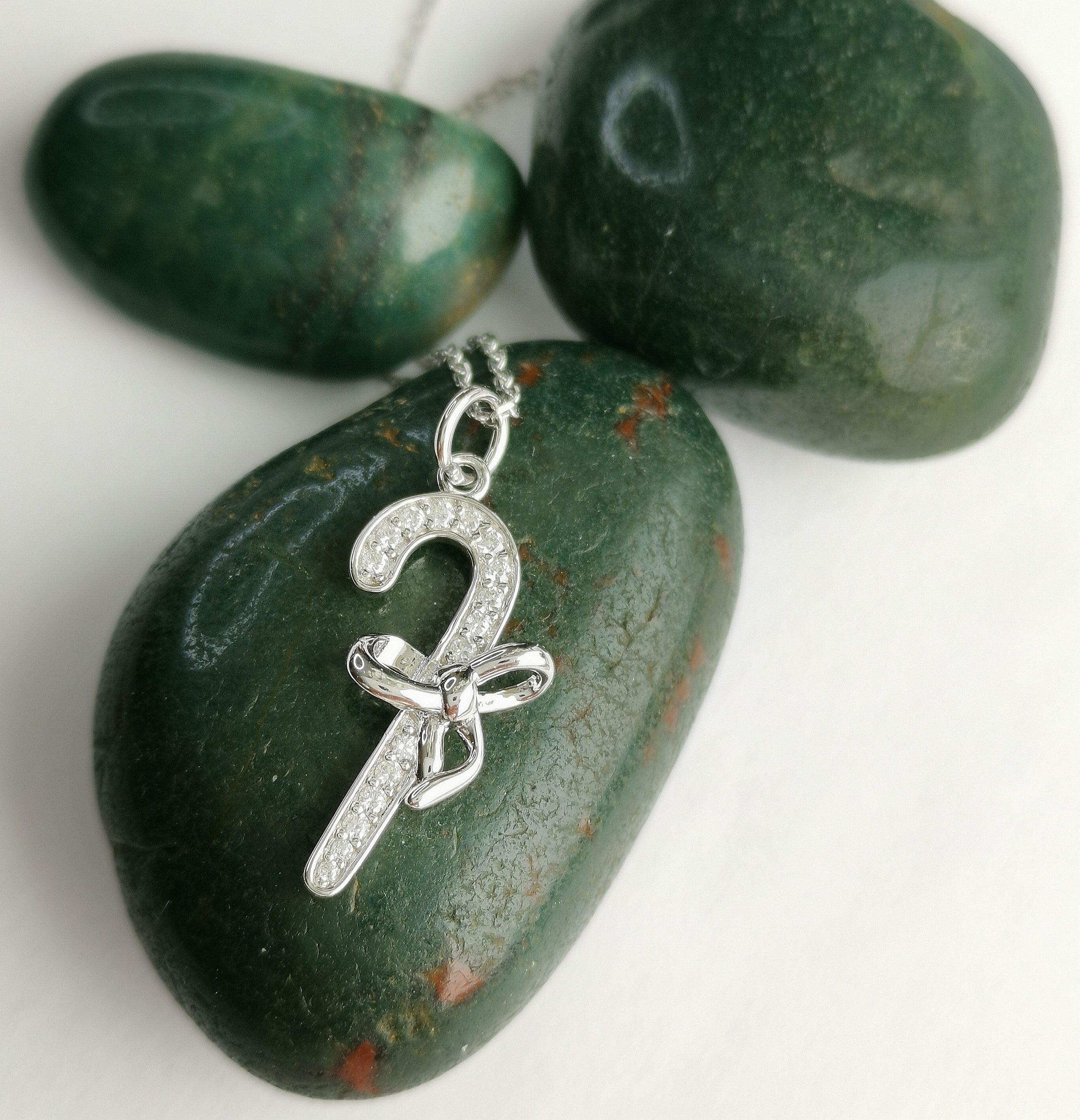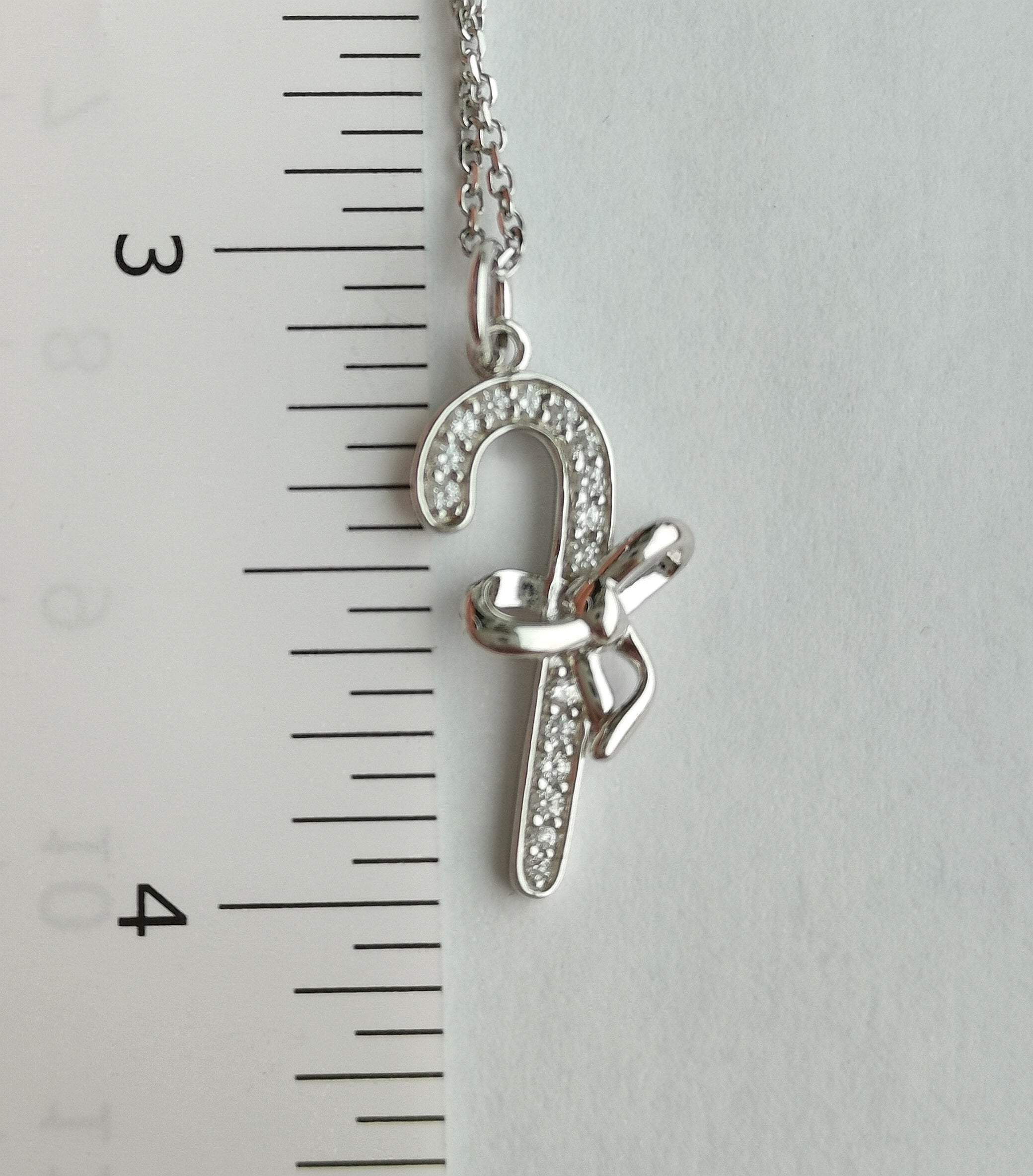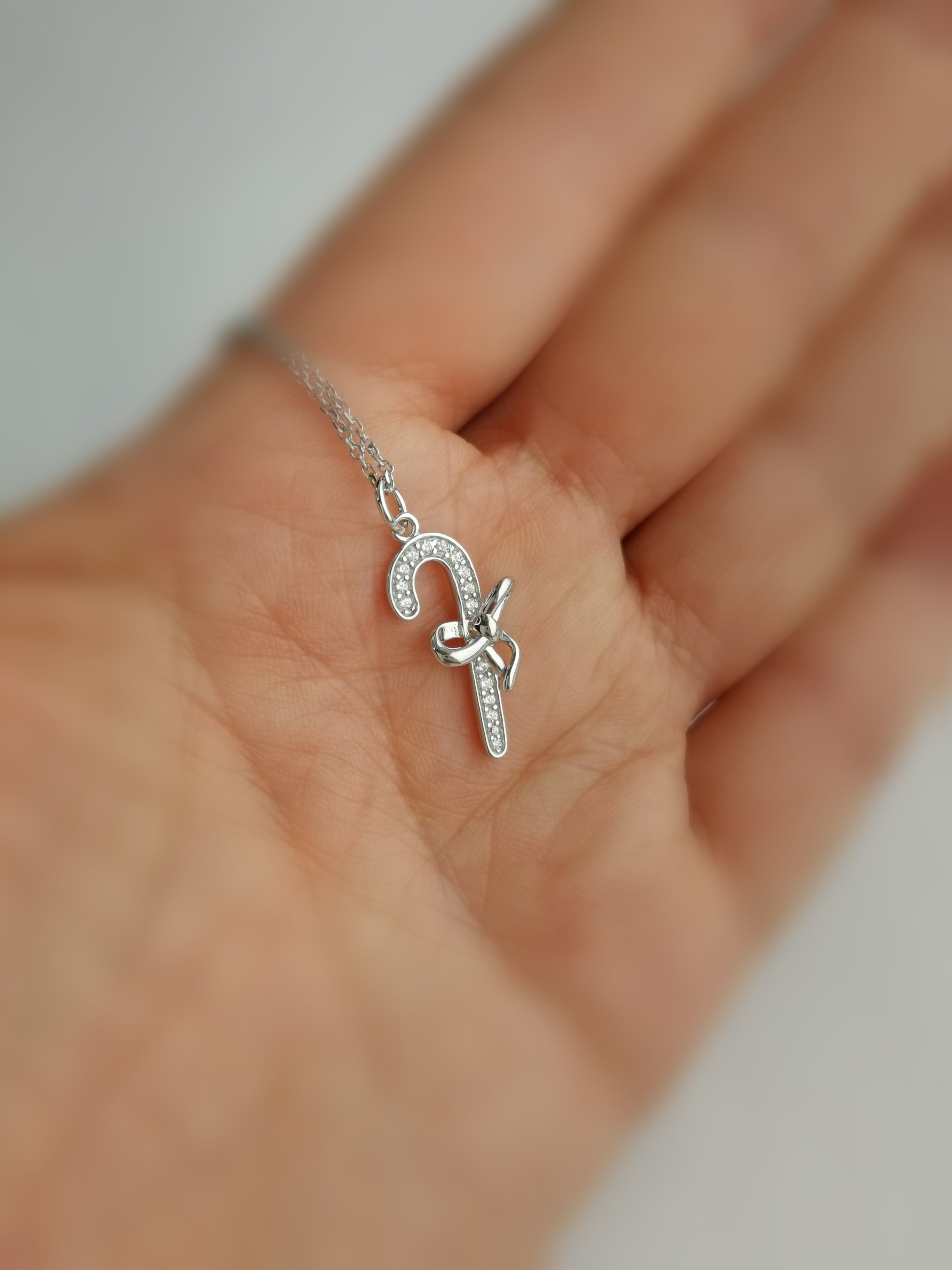 The perfect Christmas necklace. A delicate Candy Cane pendant shimmering with CZs , all set in sterlng silver.
