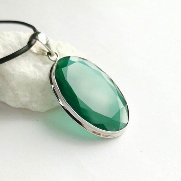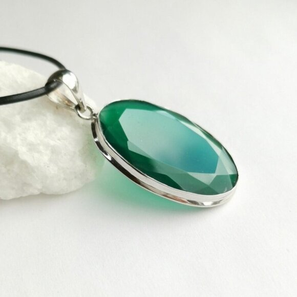 Large Oval Green Onyx Pendant in a Sterling Silver setting. A striking pop of fresh gree, perfect for all 4 seasons.