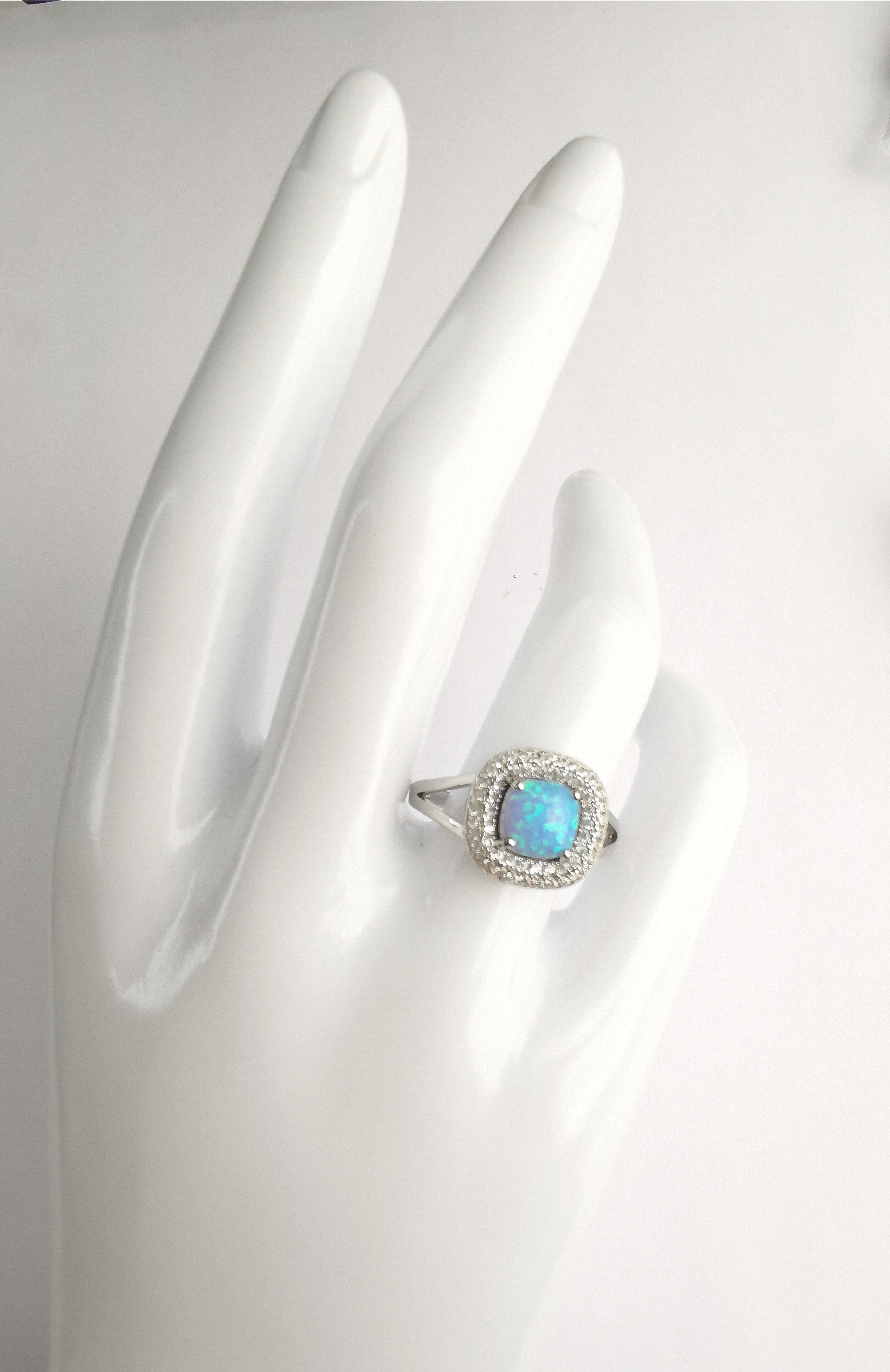 Blue Opal Pave CZ Halo Cocktail Ring